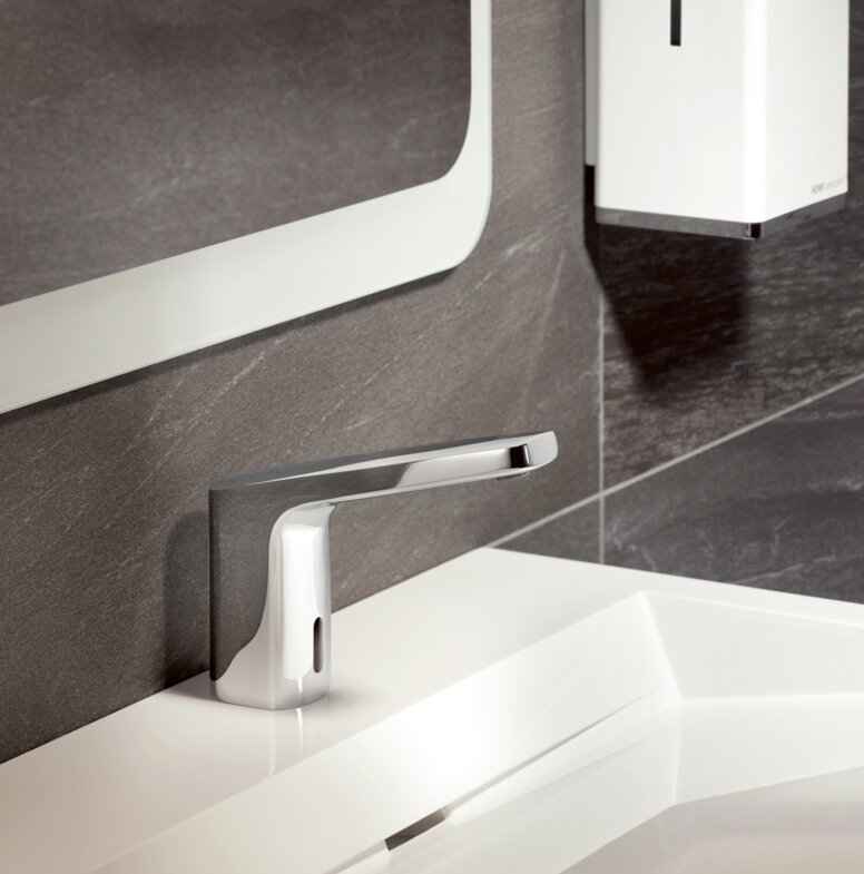 Elektronische Armaturen tragen zum Schutz vor Vandalismus am Waschtisch bei. Unsere sensorgesteuerten Armaturen verfügen über robuste Eigenschaften. Mit der qualitativ hochwertigen Verarbeitung in matt geschliffener Edelstahloptik sind sie die ideale Lösung für hochfrequentierte Sanitärbereiche. Durch den Verzicht auf Hebel, bieten die sensorgesteuerten Armaturen weniger Angriffsfläche für Zerstörungen.