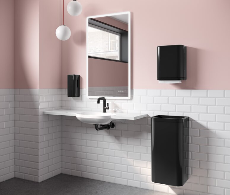Die glänzenden Spenderprodukte der Serie 477/801 stehen ab sofort in Schwarz sowie in Weiß mit rosafarbenen Rahmenelementen zur Verfügung. Beide Farbvarianten ergänzen die erfolgreiche Sanitärserie um ausdrucksstarke Gestaltungsmöglichkeiten – von klassisch-elegant bis modern-akzentuiert.