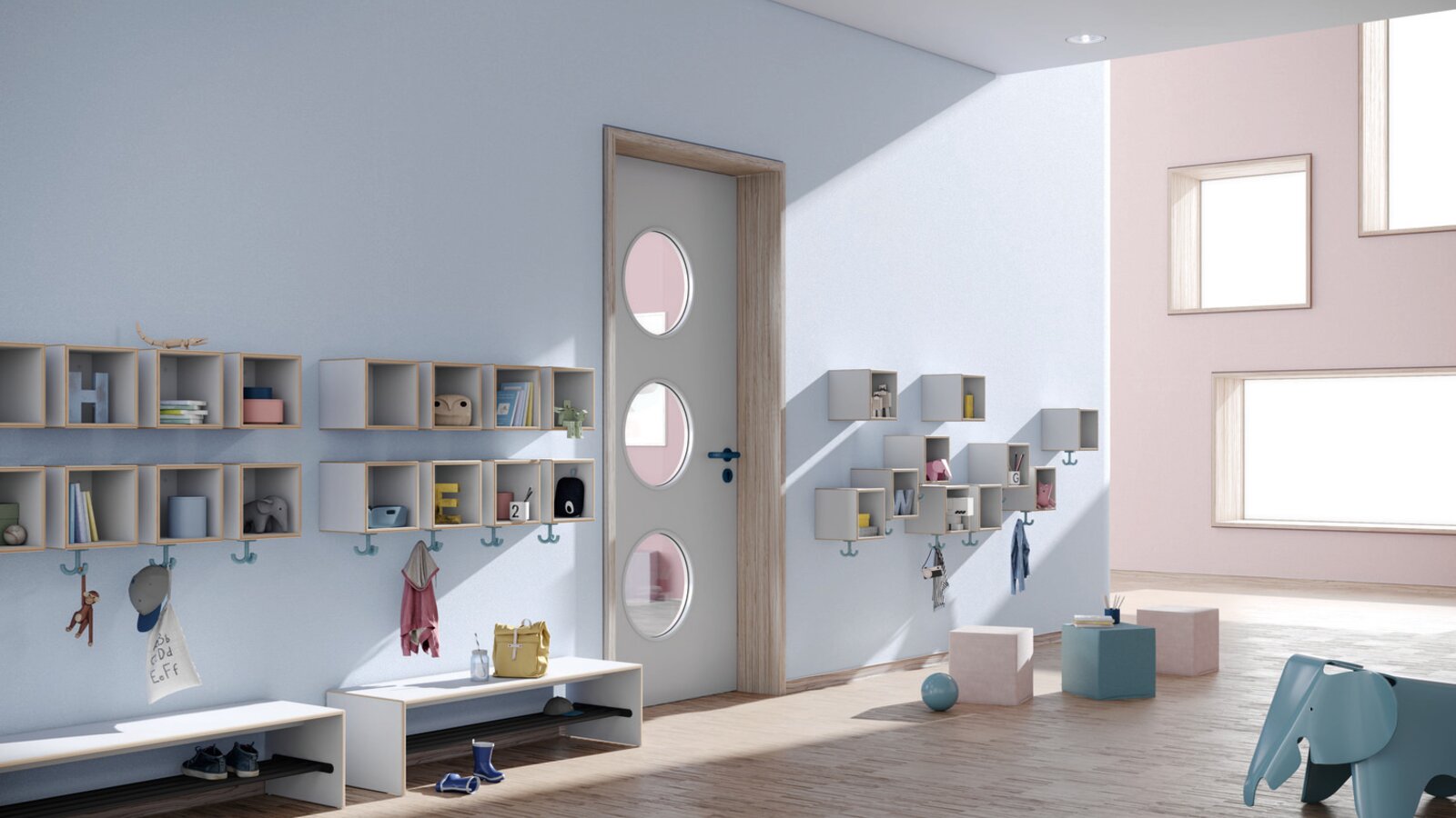 Light and freedom of movement in the nursery cloakroom
