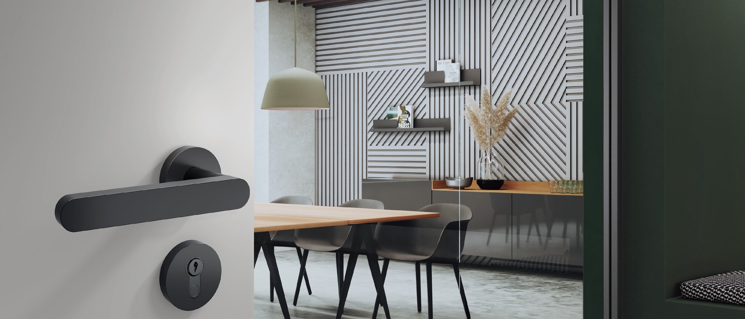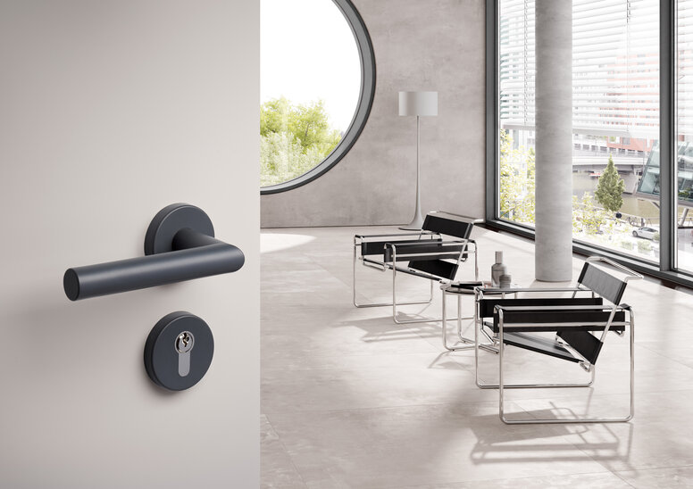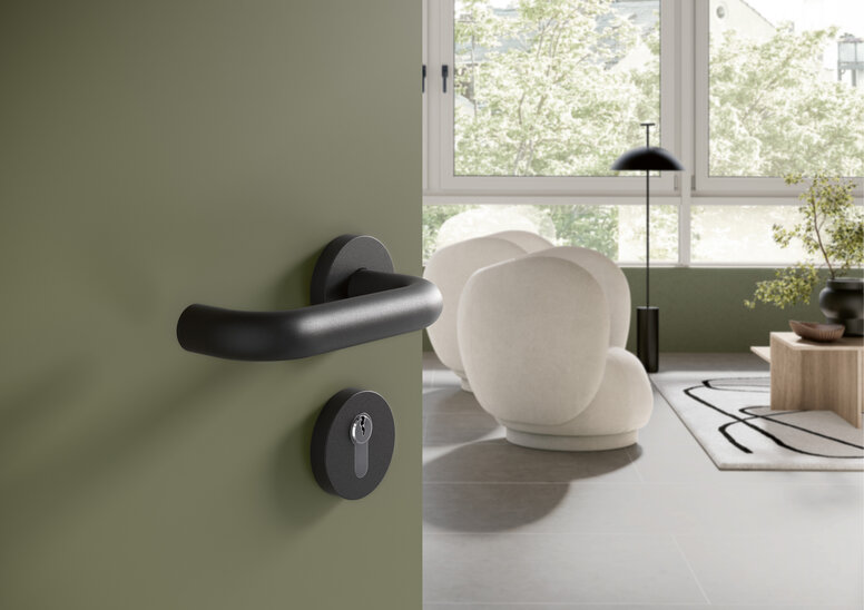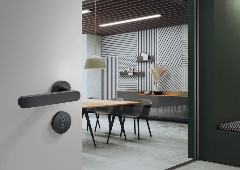 A coherent colour concept leads to a harmonious overall impression when entering a room. One of the smallest design elements is the door lever handle. Discover four fittings in matt black to accentuate the interiors.