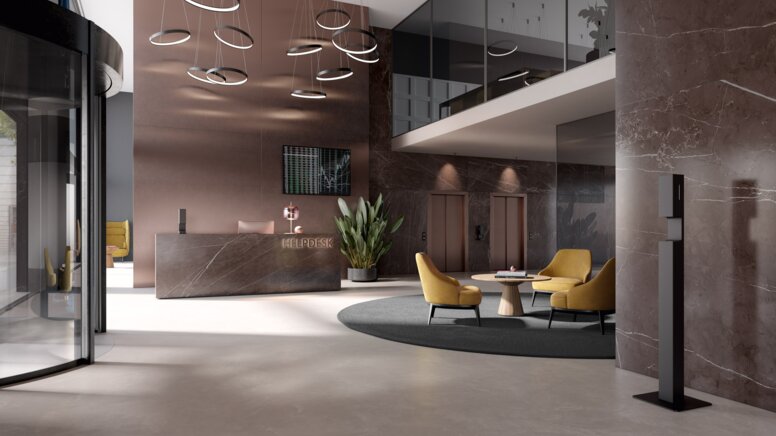 Due to its convenient mobility and height, the disinfection dispenser is best placed at the entrance to lobbies. This is where it makes a perfect first impression and enables rapid disinfection.