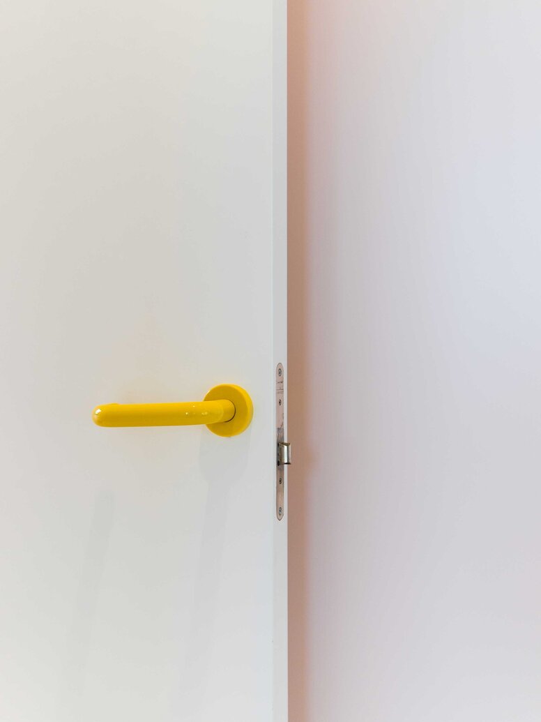The design original features a clear style. The bright yellow door handle virtually invites you to enter. As an essential and functional building block in architecture, the HEWI classic is much more than simply a door opener. Leja sees it as part of the overall creative context of a space and as a first encounter that welcomes visitors with openness and playfulness. Because a creative attitude is also expressed in detail.