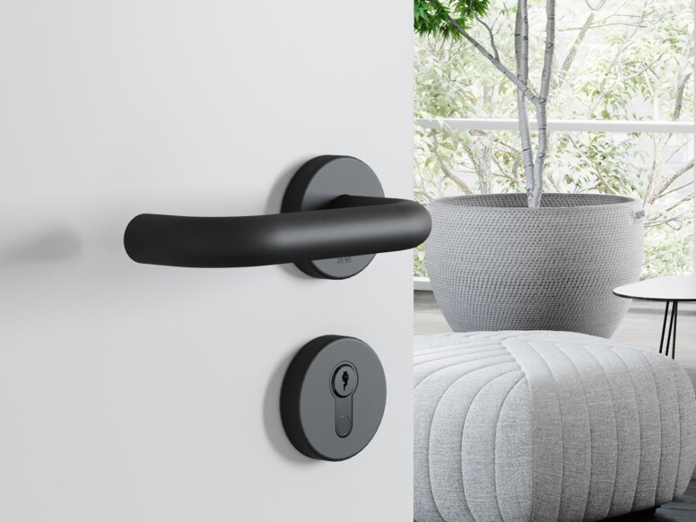 La réduction formelle de la rosace transforme la poignée de porte en un élément stylistique à part entière. L’Edition matt, associée à la solution design minimaliste mini, allie un design exigeant à une technologie innovante et fiable. Les mini-rosaces sont disponibles exclusivement pour les modèles de poignées de porte 162.