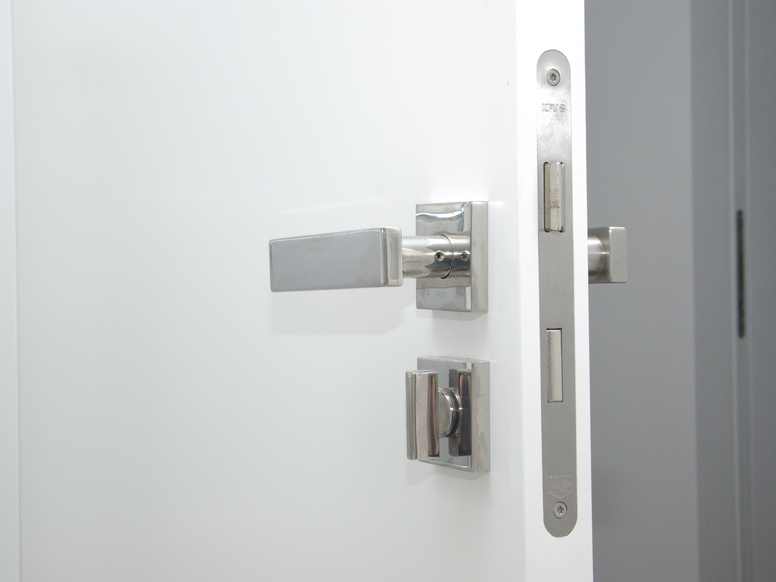 Wyrazista seria okuć 180 w pełnej stali nierdzewnej została zastosowana na drzwiach i oknach. Złączki są frezowane z litej stali nierdzewnej i dzięki temu uzyskują swój własny, niezależny kontur. Koncepcja projektowa Serii 180, która opiera się na prostokącie, nawiązuje do prostopadłościanu budynku. Połączenie z kwadratowymi różami podkreśla geometryczny język designu uchwytów dźwigniowych