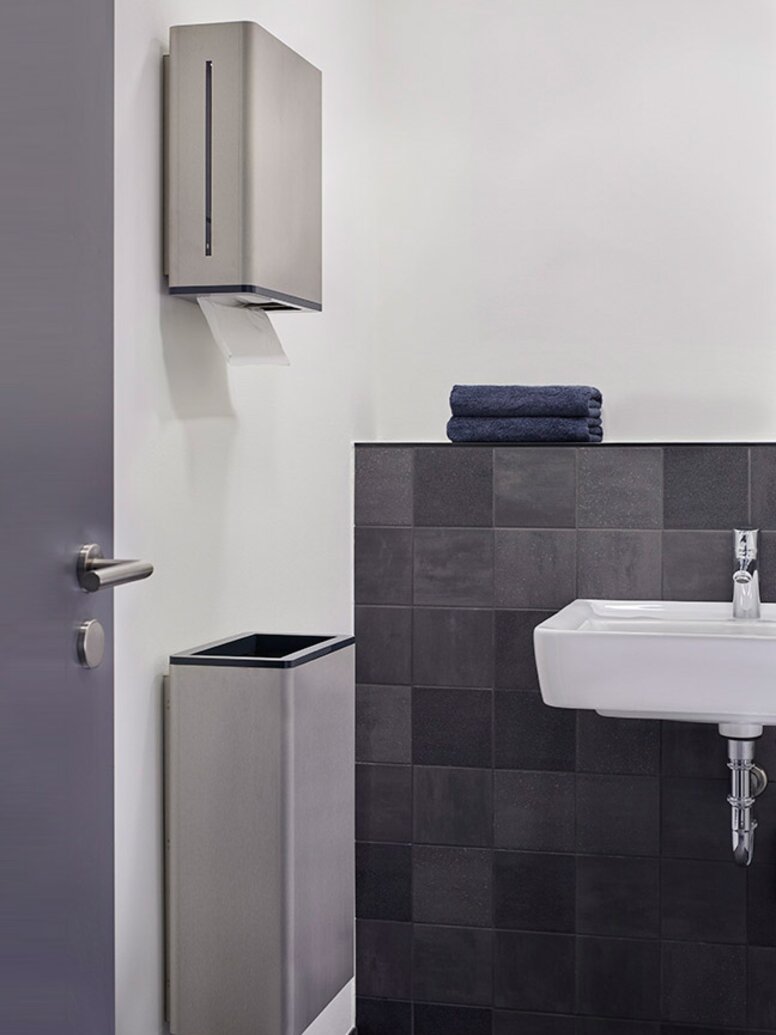 Architekci wybrali Range 805 firmy HEWI dla bezbarierowych pomieszczeń sanitarnych. Zredukowana konstrukcja serii 805 pozwala na przejrzyste ustawienie pomieszczenia. W najdrobniejszych szczegółach seria ta pokazuje, że dobre wzornictwo i inteligentne funkcje tworzą jedność. Na przykład obszar funkcjonalny systemów dozowników jest wykonany z wysokiej jakości poliamidu o kontrastowym kolorze.