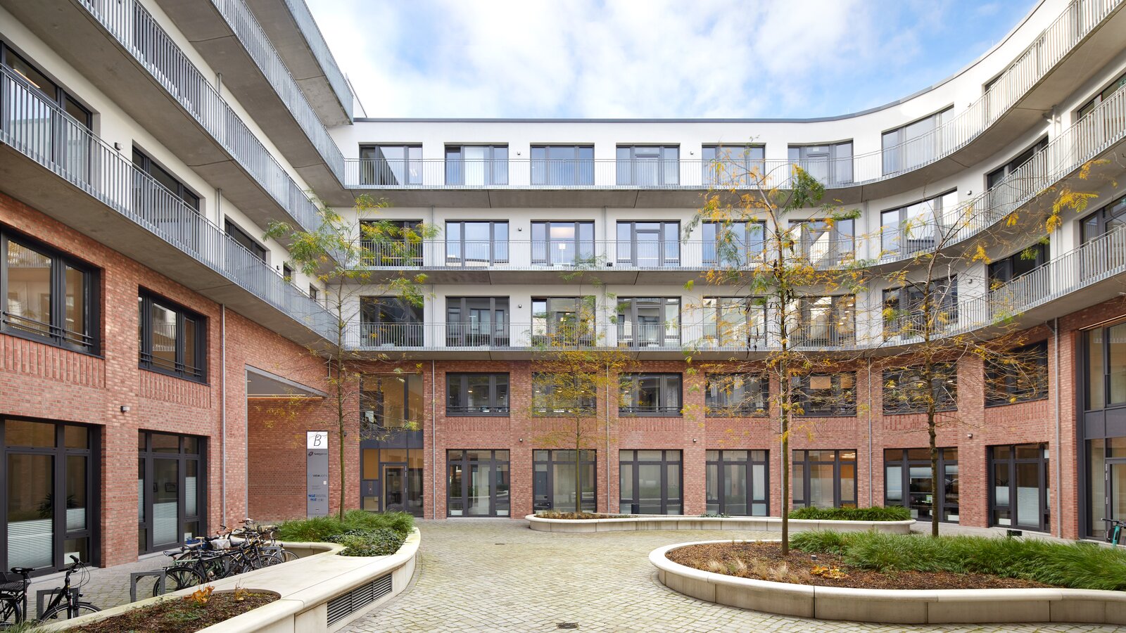 Fasada z czerwono-brązowej cegły klinkierowej od strony ulicy oraz regularny układ okien z wnęką na parapet, podkreślony specjalnym elementem dekoracyjnym z cegły klinkierowej, przypominają klasyczną architekturę przemysłową dawnej dzielnicy przemysłowej Ottensen