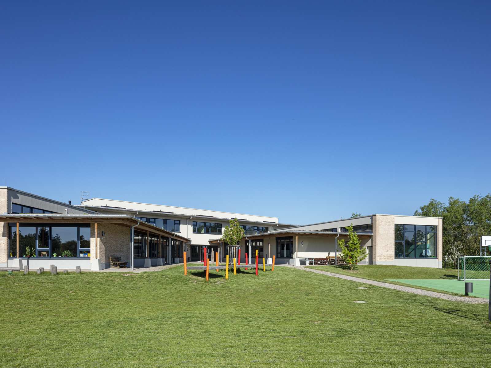 Głównym celem zleceniodawców i architektów podczas planowania i projektowania nowego budynku było wspieranie około 200 dzieci i młodzieży w ich rozwoju fizycznym i motorycznym oraz w nauce. W rezultacie powstała szkolna przestrzeń życiowa, która wspiera dzieci niepełnosprawne w nauce umysłowej i motorycznej.