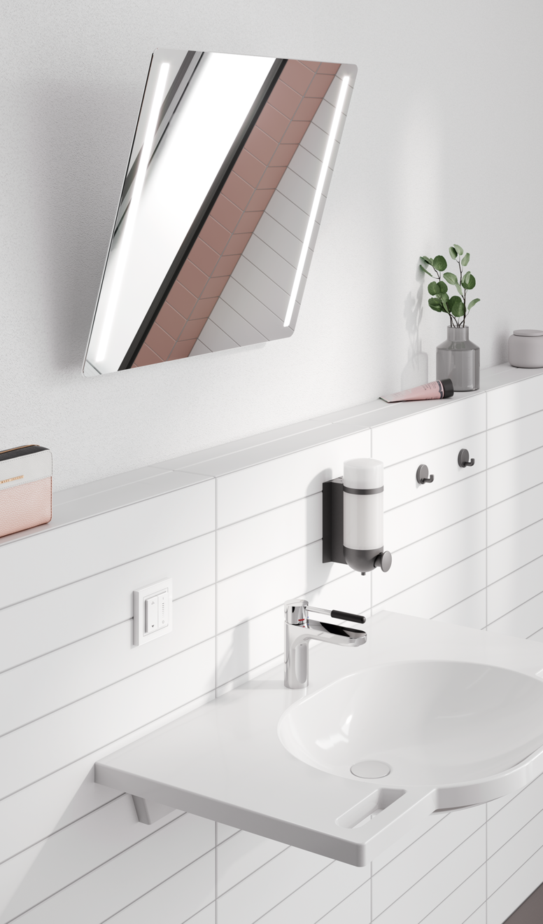 Jako ekspert w dziedzinie rozwiązań sanitarnych bez barier, HEWI ma niezwykły talent do tworzenia produktów sprawiających, że codzienne życie staje się łatwiejsze i bardziej komfortowe. Lustro uchylne z silniczkiem wzbogaca istniejący asortyment o innowacyjne rozwiązania z elektrycznym silnikiem. Funkcją pochylania można teraz sterować płynnie i wygodnie za pomocą bezprzewodowego przełącznika ściennego, który nie wymaga baterii ani konserwacji. Wyraźny wzrost komfortu użytkowników - zarówno w pozycji siedzącej, jak i stojącej. Dzięki wysokiej jakości, liniowemu designowi idealnie pasuje do wszystkich serii i systemów sanitarnych HEWI, umożliwiając samodzielność osobom w każdym wieku i o różnych możliwościach.