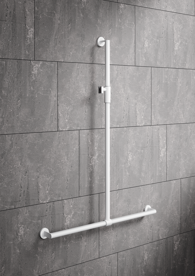 Oprócz zwykłych uchwytów z dwoma punktami mocowania poręcze prysznicowe mają jeszcze jedną zaletę, oprócz zwiększonego komfortu: Łączą w sobie uchwyt prysznicowy i opcję trzymania. Rozwiązanie to umożliwia chwytanie zarówno w pionie, jak i w poziomie.