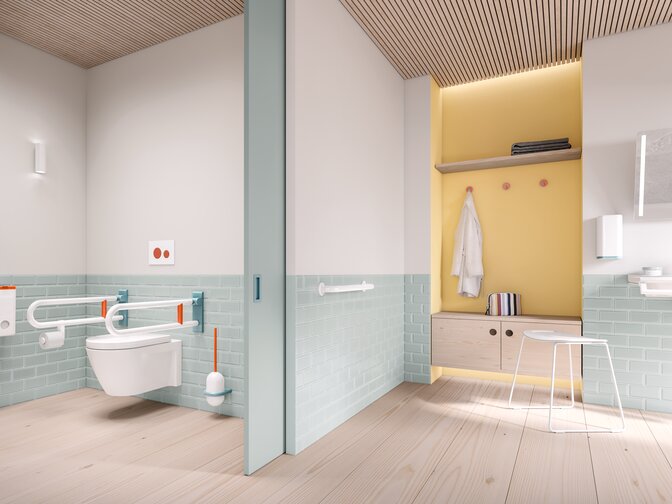 Od dozowników mydła i ręczników papierowych, prpoprzez małe kosze na odpadki sanitarnezez kombinacje higieniczne, aż po duże kosze na śmieci w różnych rozmiarach – HEWI oferuje spójny, funkcjonalny asortyment, który łączy najwyższe wymagania wzornicze z trwałą jakością.