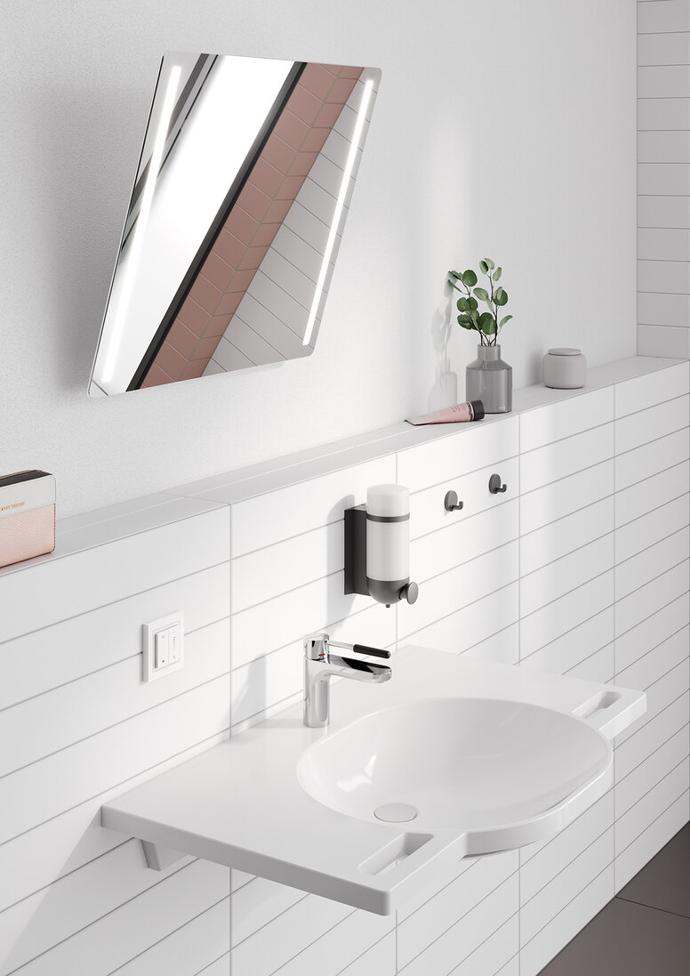Lustra HEWI dopełniają wystrój każdej łazienki. Rozszerzony asortyment obejmuje lustra uchylne z czarnymi i białymi ramkami, innowacyjne lustra z oświetleniem LED z podświetlanymi elementami obsługi oraz nowe lustro uchylne z napędem silnikowym.